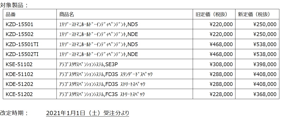 つきましては、誠に不本意ではございますが、一部製品価格を改定させて頂くことになりました。